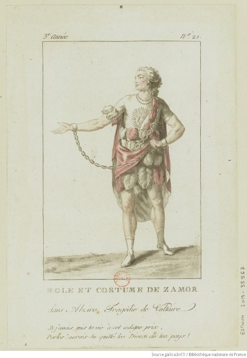 Figure 2: Jean-François Janinet, Rôle et costume de Zamore (dans Alzire, tragédie de Voltaire), engraving, 1788, Bibliothèque nationale de France. Fonte: Bibliothèque nationale de France (BnF).